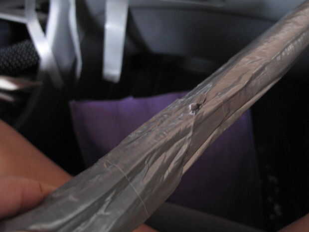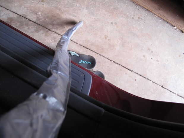 Abrir la puerta de su coche y ejecutar el tubo fuera del vehículo. Asegúrese de que la puerta no golpe en el tubo o no doblar el tubo para arriba.