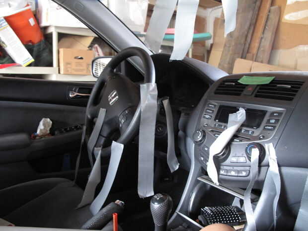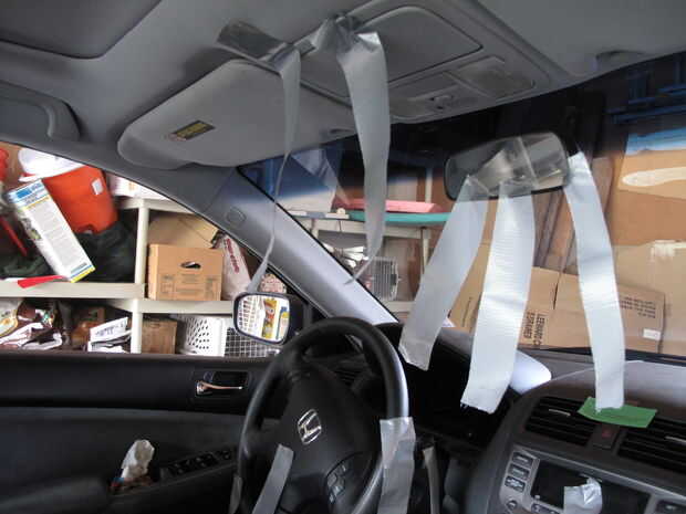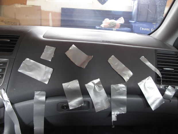 • Rasgar un montón de longitudes de 12 pulgadas de cinta.  (nada más puede enredarse para arriba sobre todo si haces esto en tu coche)
