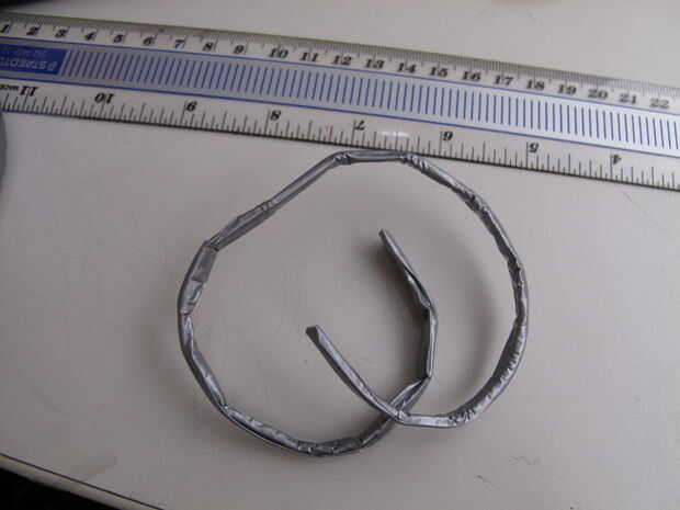 • Corte un trozo corto de cinta y con los extremos de su rollo de superposición de una pulgada, cinta el anillo cerrado.