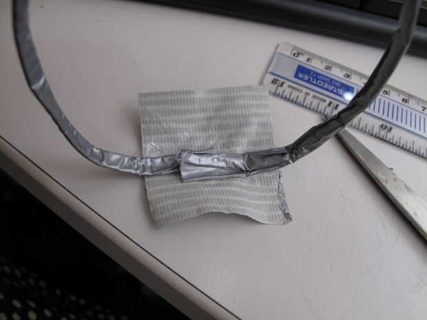 • Haceos un pedazo del lado adhesivo de la cinta (aproximadamente 10 pulgadas de largo) de conducto.