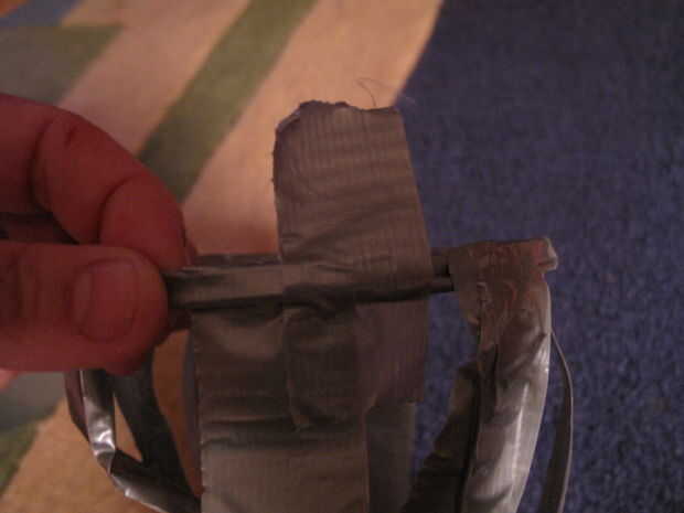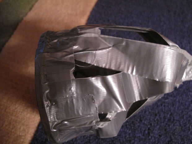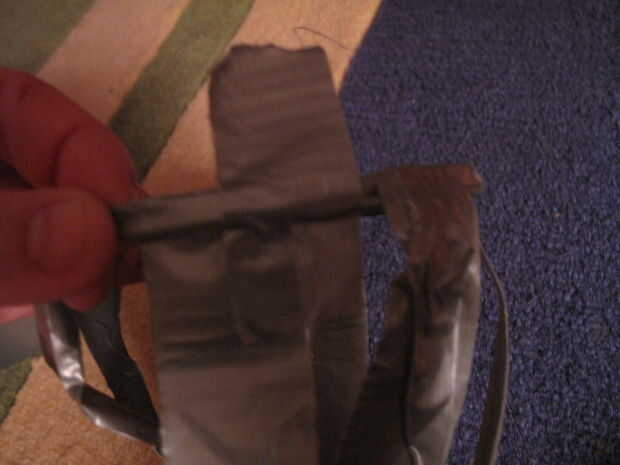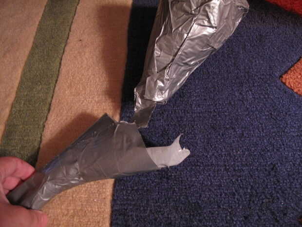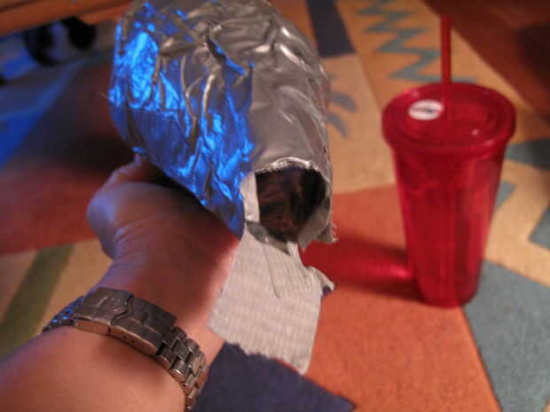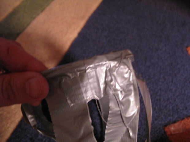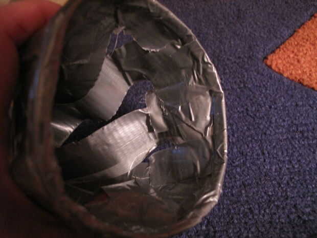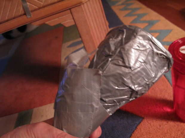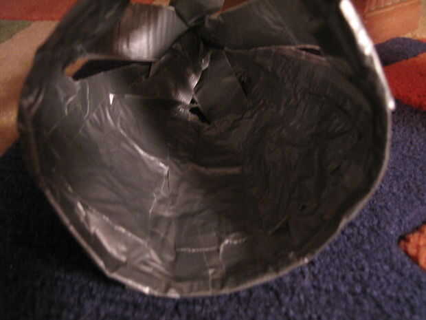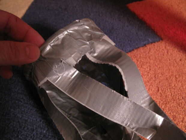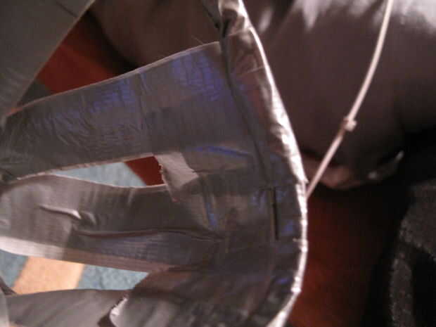 Otra vez, mirar el interior del cono. Presione pedazos de cinta adhesiva en el interior del cono para cubrir agujeros ni adhesivos que muestran a través del otro lado. Y después, revisar el exterior para cualquier agujeros o adhesivo que muestra a través de y parche según sea necesario.