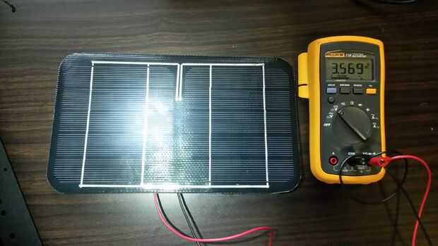 La parte posterior del panel debe tener dos cables. Para comprobar la polaridad, simplemente conecte un voltímetro a los conductores y brillar una luz en el panel. Voltaje positivo significa que los cables positivos y negativos en la orientación correcta. (He tenido un panel con orientación invertida, así que siempre es bueno comprobar antes de soldar)