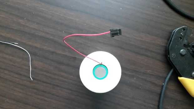 Doble soldadura, después el final del negro de alambre con el pasador de Hirose e Inserte el pasador al puerto 2 del conector de 2 pines de Hirose. Incline el aparato y presione la batería hacia fuera de debajo con el dedo.