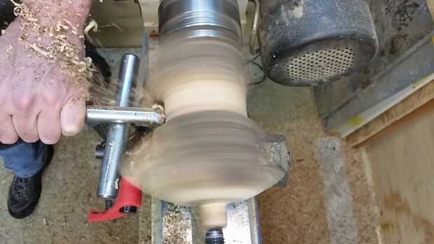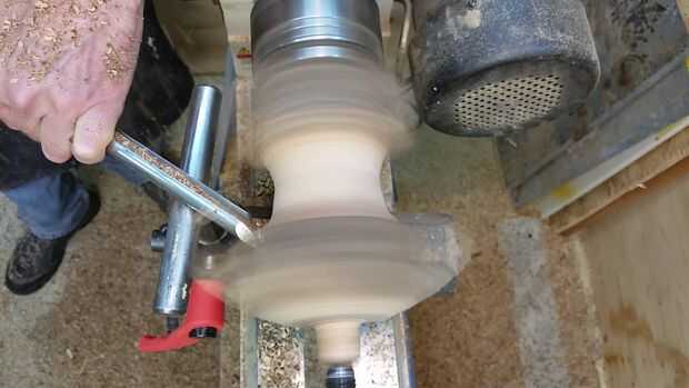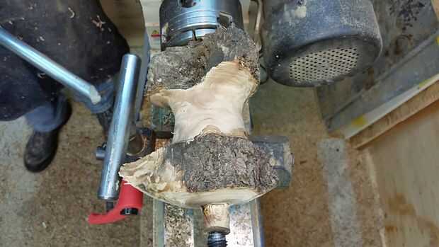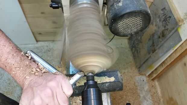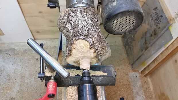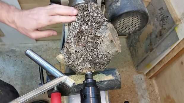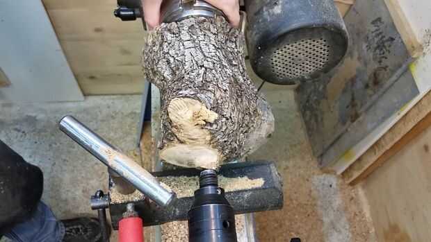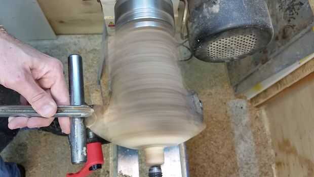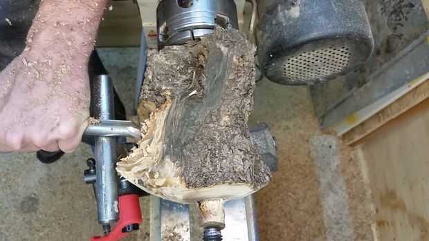 Necesita configurar el resto de la herramienta tan cerca como cómodamente sea posible al punto donde estás intentando cortar, así que observe cómo rotaba mi resto de herramienta para que coincida con el espacio dejado por el corte de ramas en esta pieza de madera. Empecé haciendo girar la parte superior en una cúpula. De esa manera aún puedo decidir qué voy a hacer sin perder demasiada madera. Esto también mostrará me el spalting y los colores de la madera.