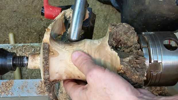 Esta pieza es de una danza hacia atrás hacia adelante. Desea que su forma definen de modo que usted podría hueco, mientras que necesita dejar suficiente madera en la base de la forma para soportar las fuerzas del hundimiento.