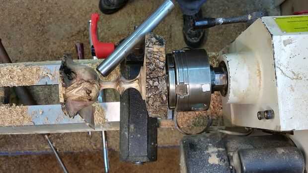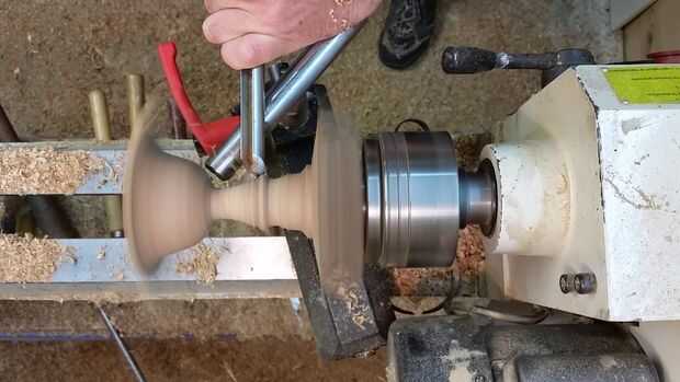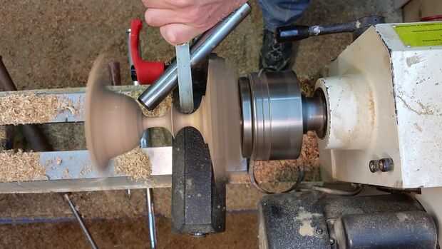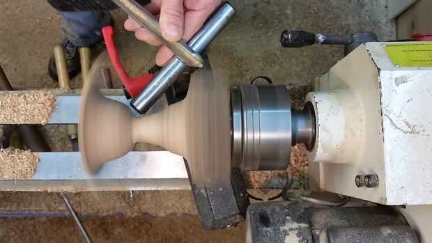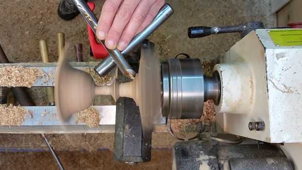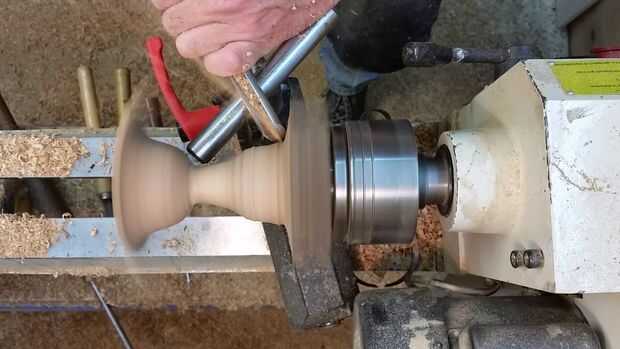 Como veis que he empezado en la base, corte en su mayoría plano, con un poco altura marca la base de mi embarcación, el lugar donde el pie encuentran la base. Una vez que estoy contento con esa parte estoy empezando a trabajar en el cuerpo de la nave. Durante la formación que deciden añadir un elemento decorativo en el centro del tallo, para mostrar la hermosa veta de oliva, es un montón de madera que estamos despegando a salir el tallo, podemos mostrar algunos de él apagado usando esta pequeña adición. Una vez que la forma de la base y el tallo más o menos terminado, podemos pasar a lijar la pieza.