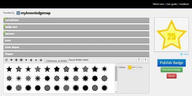 OpenBadges ya están en uso en muchos lugares pero si podría utilizar un poco de inspiración, usted debe comprobar de parches de Adafruit como parches de habilidad de DIY.org. Para este ejemplo, he diseñado un rápido y sucio insignia de estrella de oro a alguien visita un fablab ficticio por 25 veces :)