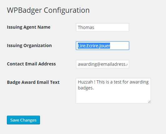 Una vez haya rellenado todos los campos, guardar los cambios y pasemos al siguiente paso para crear tu primera bona fide OpenBadge!