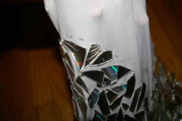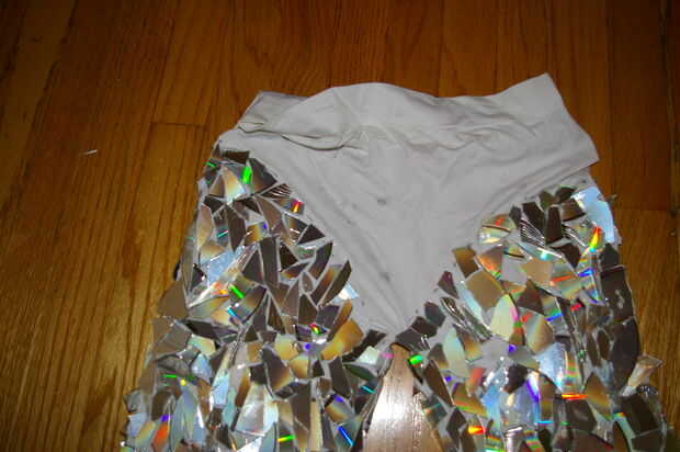 Luego tomar un marcador - el encendedor de la mejor - y hacer una línea discontinua que sigue donde se reúnen los agujeros de la pierna de leotard con las polainas.