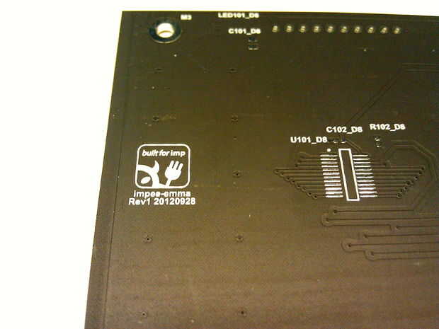 1. el gráfico "construido para imp" en el tablero de Emma es el logo de Imp sólo que puede imprimir en sus diseños fabricados. Esta es la única en Emma, por lo que está todo claro para construir esta uno como-es.