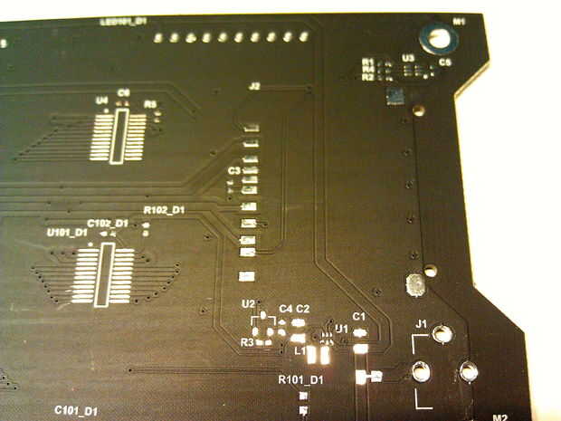 4. baja impedancia de tierra son importantes. Como se puede ver en los ficheros gerber de Emma, hemos elegido a planos de tierra alrededor de las señales en las capas superior e inferior después de que todas las señales fueron encaminadas. Si haces cualquier diseño nuevo, asegúrese de que cada camino a tierra es agradable y claro; conexiones de alta impedancia a tierra hacen ruidosos circuitos y circuitos ruidosos son una cosa mala que junto a un dispositivo wifi!