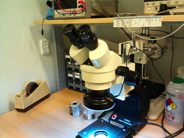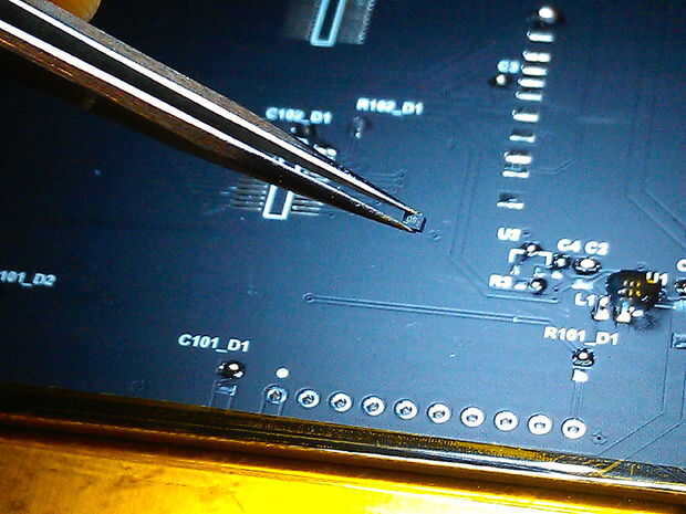 4. un microscopio soldadura y buenas pinzas. La mayoría de piezas discretas de Emma son piezas tamaño 0402.