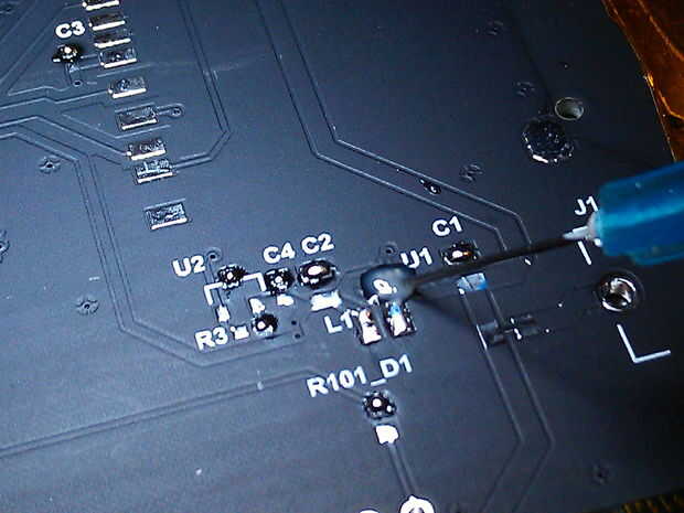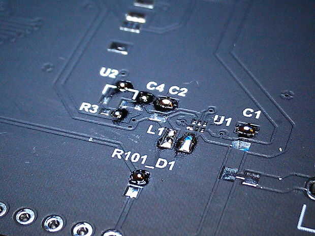 3. flujo y una pistola de calor son necesarias para bajar el convertidor DC/DC TPS62237 y el Sensor de luz de Taos. Esto no será el caso cuando el diseño actualizado con fuente de alimentación LDO es publicado.