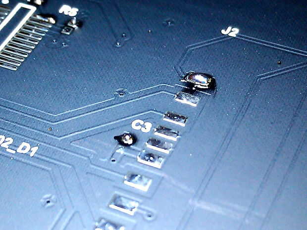 El primer paso que siempre utilizo es poner una pequeña cantidad de soldadura en la parte superior o derecha ' de cada componente que necesitará de la soldadura hacia abajo. Esto hace que para soldar los componentes mucho más fácil: poner el componente con pinzas, vuelva a fluir la soldadura ya en el tablero y el componente de anclaje hacia abajo, luego al otro lado de la soldadura hacia abajo.