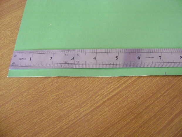 Primero haremos la base del cubo de basura de la hoja de la tarjeta verde. Se hará con el semicírculo. Para eso, primero tomar el ancho de