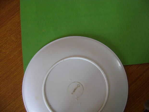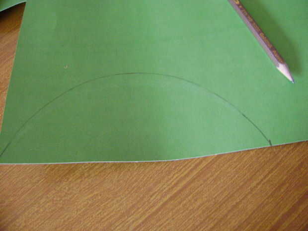 Tomar una placa que podría semicírculo curvilínea. Dibujar el contorno de la línea de 7 pulgadas.