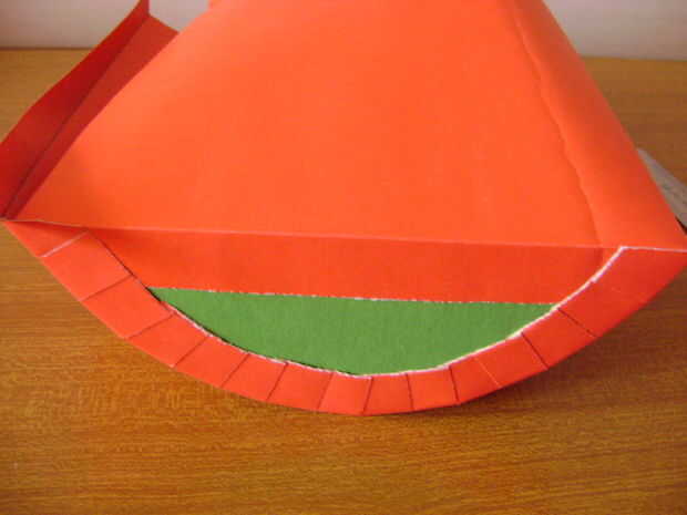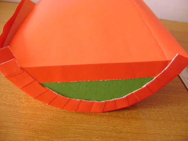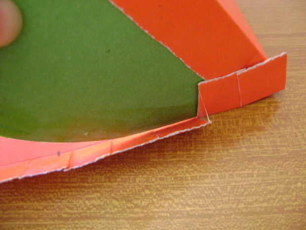 Ahora aplicar el pegamento en el bajo lado de cortes y pégalo a la base, haciendo un círculo.