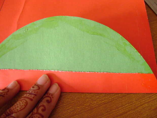 Finalmente aplicar el pegamento en el área de 1 pulgada extra y péguelo a la pared recta para completar el semicírculo.