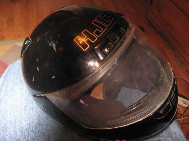 -un casco de motocicleta (puede ser cualquier casco mientras tiene un visor)