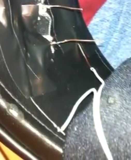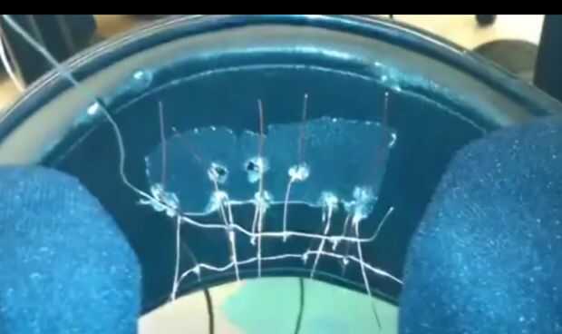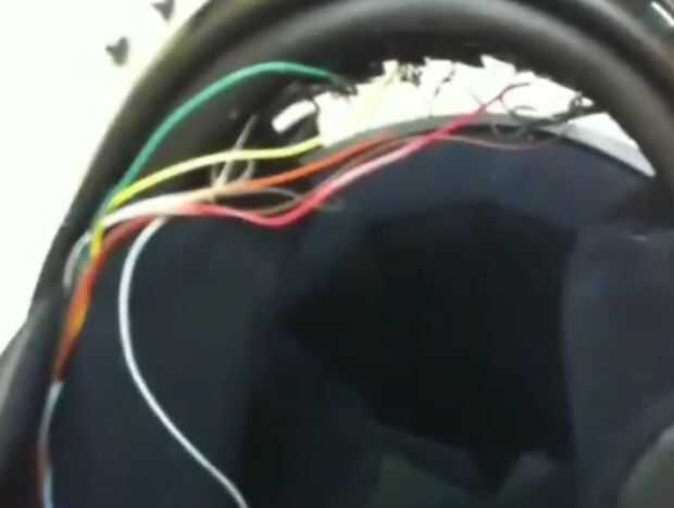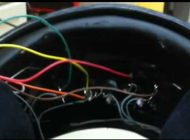 Ahora, la soldadura de longitudes de cable a través de las piernas largas de los LEDs. Estos serán los cables de alimentación. Cuando teníamos en la boca soldado, que dobla hacia abajo y ponga cinta sobre ellos para que no toque las patas cortas y cortocircuito. Entonces tomamos algún alambre de la cinta y soldadas a los cables de fila y había enviado funcionando detrás en el agujero donde se almacenaría el Arduino.