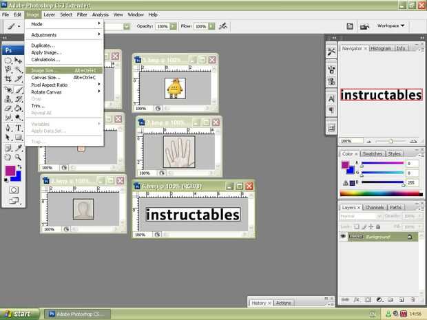 En la barra de herramientas superior, haz clic en el menú desplegable de imagen y haga clic en tamaño de la imagen escribir y memorizar las mediciones. Encuentra el ancho máximo y la altura. Entonces minimizar todas las imágenes.