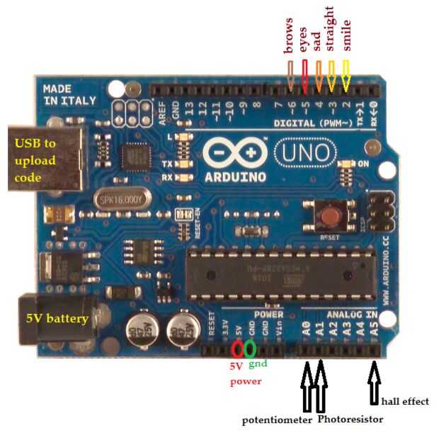También, asegúrese de conectar cada parte del circuito con el correspondiente conector de arduino que debe ser conectado, como se ve en