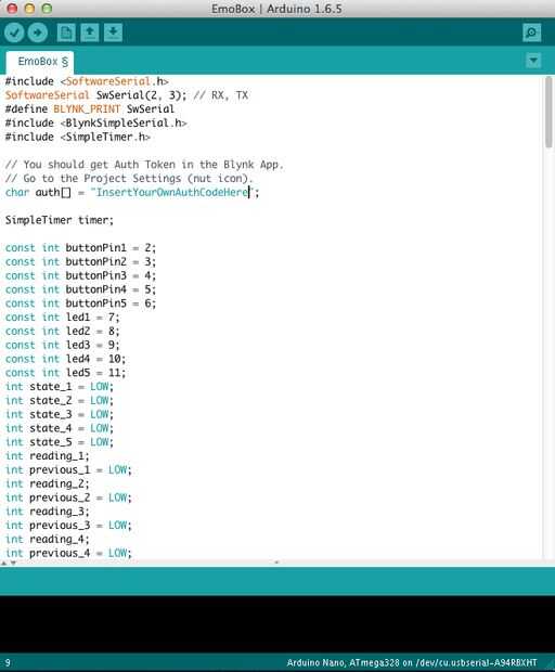 - Escriba el código de autorización que usted obtuvo de su aplicación en la variable auth. De lo contrario no será capaz de conectarse a la caja!