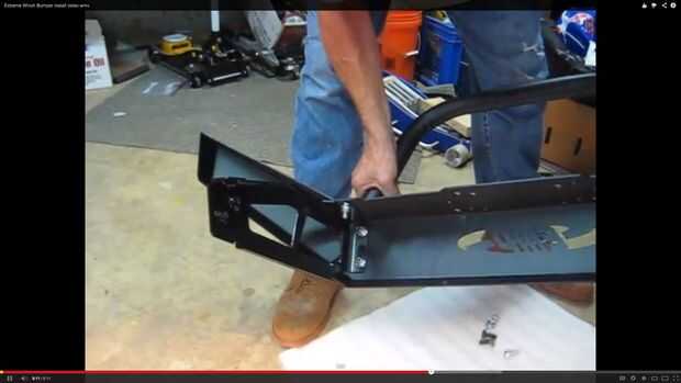 Hay dos tornillos que fijan cada soporte de la parte trasera del parachoques. Hay un perno que se monta la parte superior de la abrazadera para el parachoques. Instale los tres tornillos firmemente, como va a ser difícil apretar una vez instalado el parachoques. Repita en el otro lado.