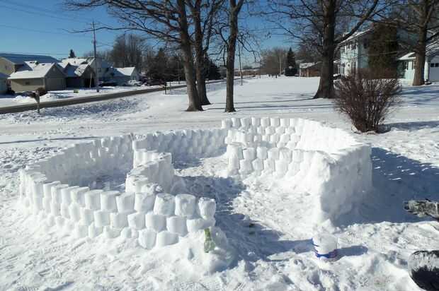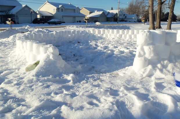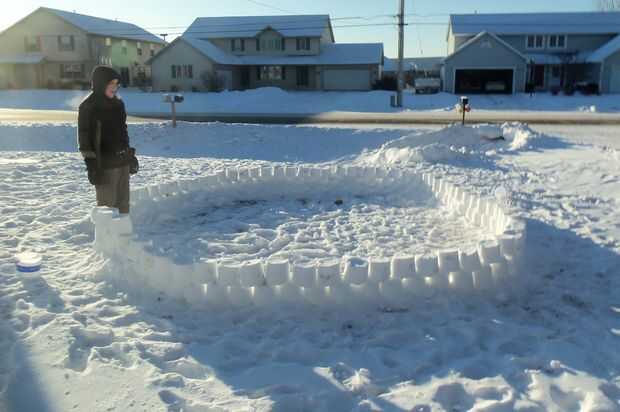 Al hacer cada nivel individual, rocíe cada nivel con una botella de agua. Esta pulverización ayudará a solidificar y mantener las cosas Unidas. (ADVERTENCIA: si se pulveriza el malvavisco bloques mientras que todavía se encuentran en el cubo/contenedor de hielo crema, el malvavisco puede desmoronarse como sale el molde de cubo.) Si es posible, esperar hasta que haya terminado y colocado una nivel completada/capa de la palizada antes de rociarlo con agua. Si tienes dos personas ayudando a construir, puede ser mejor para una persona rociar las paredes mientras que la otra persona crea más bloques.