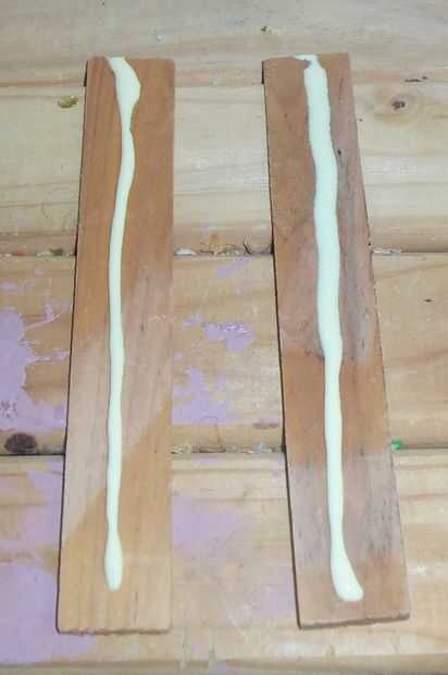 1. poner una capa de pegamento sobre cada pedazo de madera.