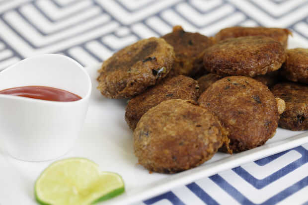 Estas chuletas de atún pueden ser hechos con mucha antelación y almacenados en el congelador. Usted tendrá que descongelar antes de freír. A veces los horneo en el horno, una opción más saludable. Todo lo que tienes que hacer es en una hoja forrado bandeja y cepillo con unas gotas de aceite. Calor debe ser de 160 grados centígrados.