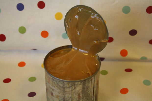 Consejo rápido - hervir varias latas a la vez y almacenar refrigerada sin abrir latas en la despensa para la próxima vez que desee hacer esta tarta!