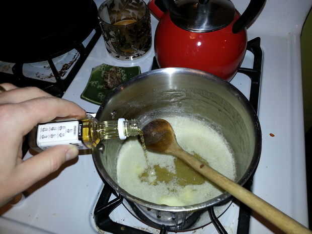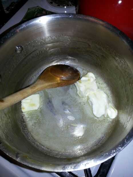 Poner la mantequilla en la cacerola y fundirlo. una vez que la mantequilla se haya derretido, agregar el whisky. inmediatamente comienza a burbujear para arriba. una vez que es, en el siguiente paso!
