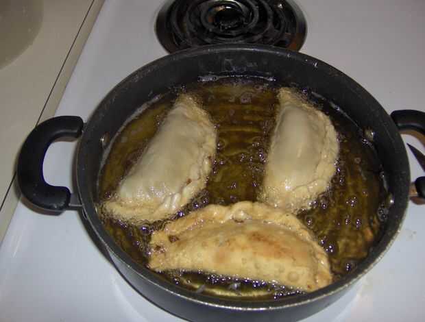 Llene cada masa redondeada con unas 3 cucharadas del relleno y doblar, con agua para sellar los bordes. mina no son demasiado bonita, pero seguro que saben bien! freírlas en aceite hasta dorar por fuera.