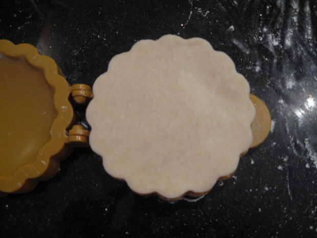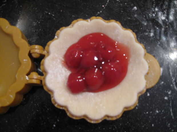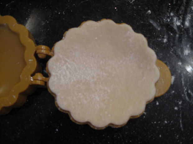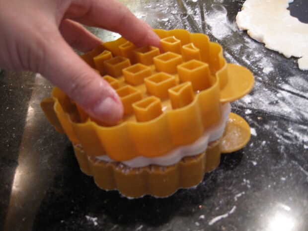 12. Coloque otro corte en la parte superior y presiona la parte superior del molde hasta sello los bordes de la tarta.