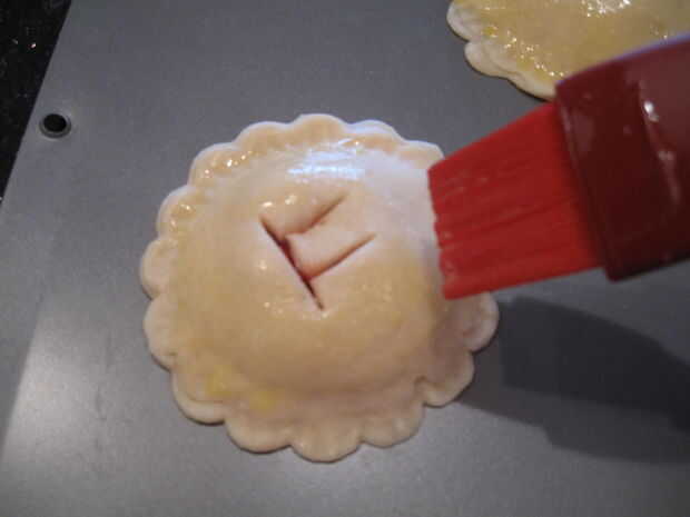 11. cepillar los bordes de la masa con el lavado de huevo.