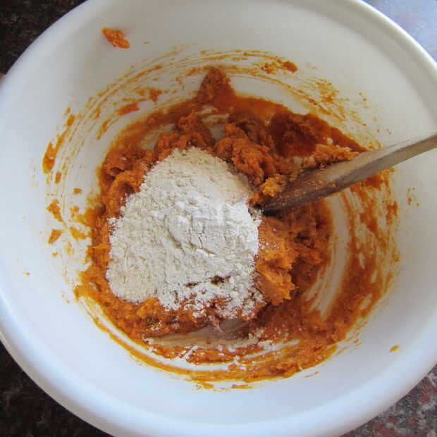 Agregue tanta harina que haga falta para hacer una masa firme.