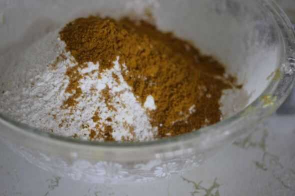 En un tazón grande, mezcle la harina, sal, levadura en polvo y curry en polvo en un tazón grande.