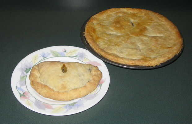 Iba a hacer empanadas de Cornualles todos al principio, pero decidió en una empanada de carne para la cena y empanadas con cualquier izquierda overs.
