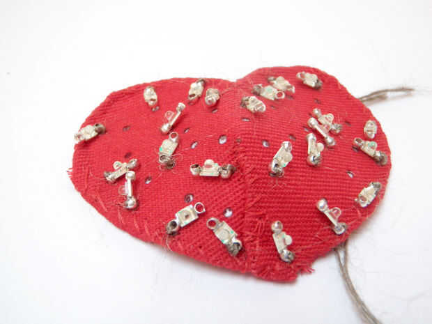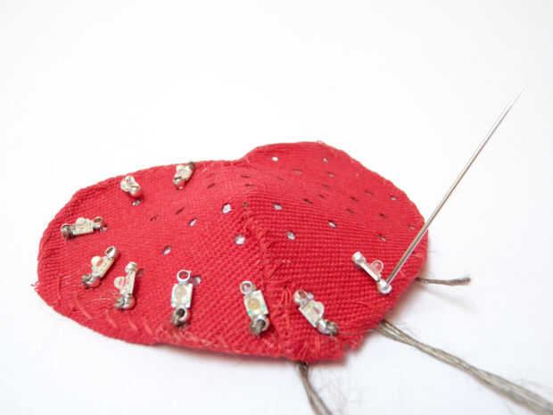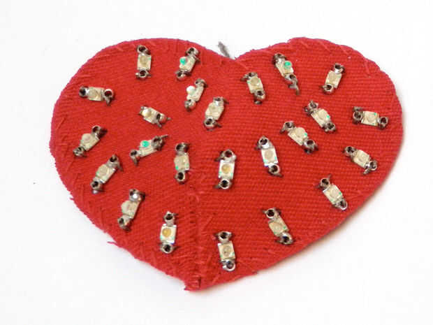Lo importante a tener en cuenta ahora es que el lado marcado totalmente cosido y el lado no marcado es totalmente cosido por separado. También es muy importante que ninguno de los hilos conductores Cruz. Cosí los LEDs en una espiral en movimiento hacia el interior evitar cualquier posible hilos superpuestos.