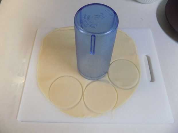 Estirar su tarta y cortar en círculos con un cortador de galletas taza o círculo.