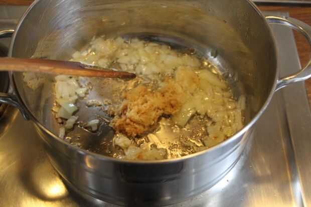 2. Añadir la pasta de jengibre, cocine hasta que estén doradas
