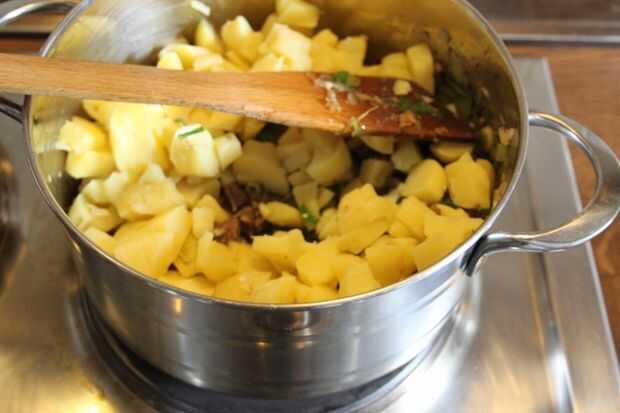 7 por último añadir las patatas y mezclar bien.