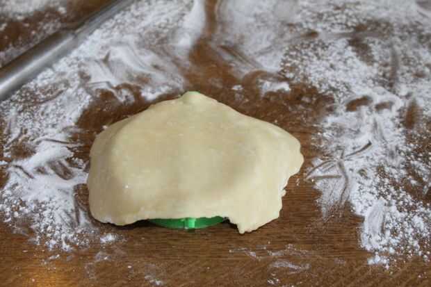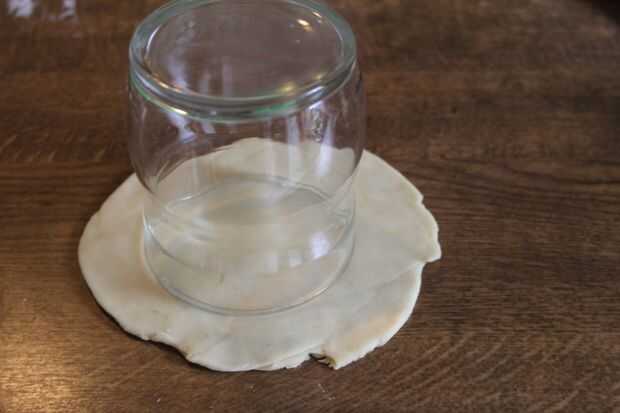 Presione el borde de vidrio a la masa en un poco más difícil, que corte una forma de una ronda. Saque la masa extra.