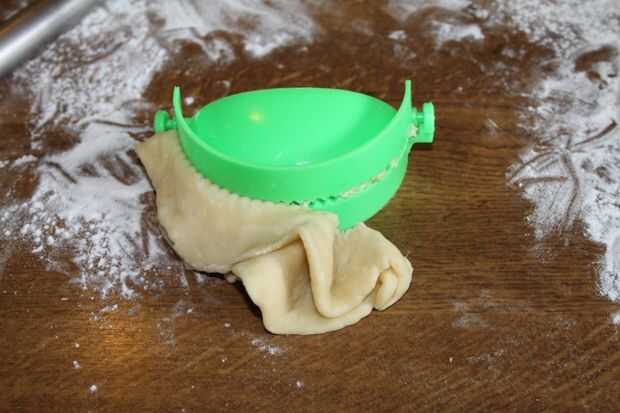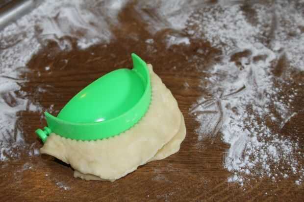3. Coloque la masa plana enrollada sobre el cortador de empanadas.