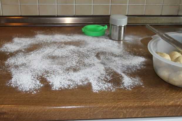 2. con los dedos limpios el rodillo la masa uno por uno hasta que es 1/8 pulgada de espesor.