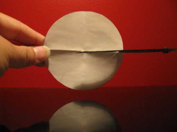 ♦ Abrir para arriba y corte una raja hasta el centro del círculo.