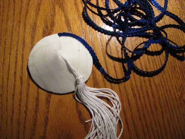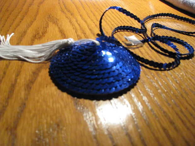 ♦ una vez en la parte superior, corte el eccess lentejuelas. Si usted está teniendo problemas para conseguir el final de las lentejuelas para unir pelar apagado algo de él y aplicar un punto de pegamento en la punta de la base y vuelva a colocar las lentejuelas.