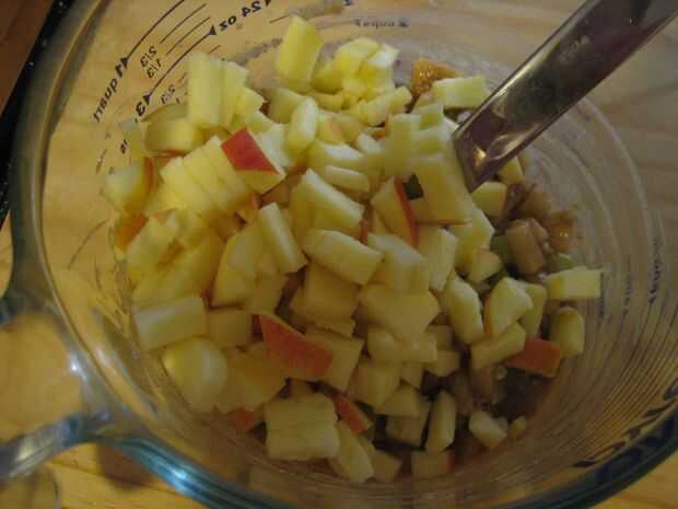 2. Mezclar todos los ingredientes excepto las manzanas hasta formar una pasta espesa