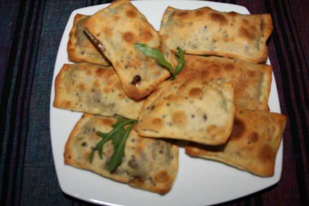 Servir las empanadas de Strudel tibio. Van bien con chillie pasta y tomate salsa mezclados entre sí. Disfrutar de